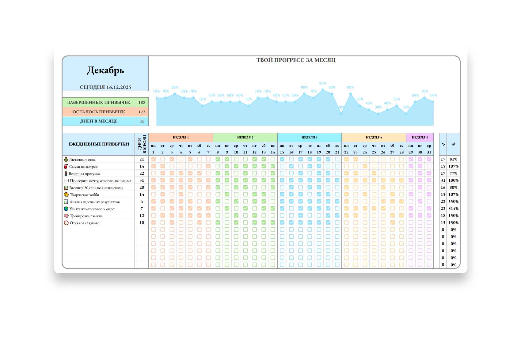 Это ваша личная система управления каждым днем для просмотра своего личного роста. Не просто список дел, а единая экосистема, где все элементы связаны: